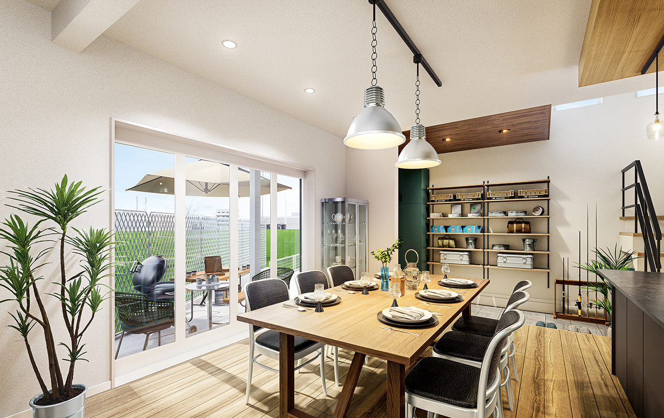落ち着いた色合いで温かみのあるダイニングに。