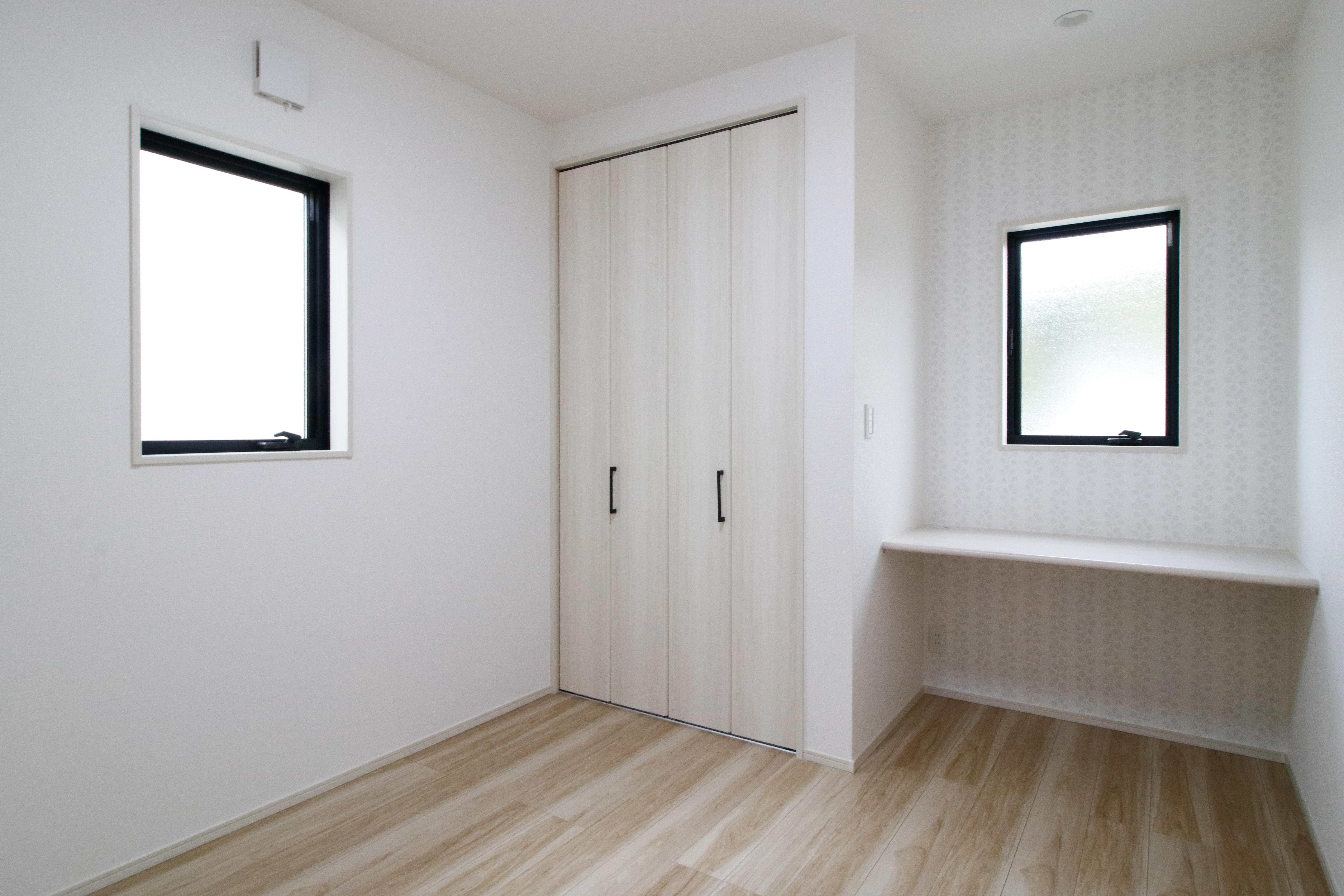 窓際にカウンターを設置しています。お子様の部屋としても使い勝手の良い居室です。