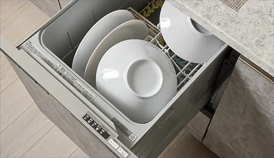 食器洗浄乾燥機を設置。除菌洗浄、除菌乾燥で、食器をスッキリ洗い上げ、清潔に保ちます。