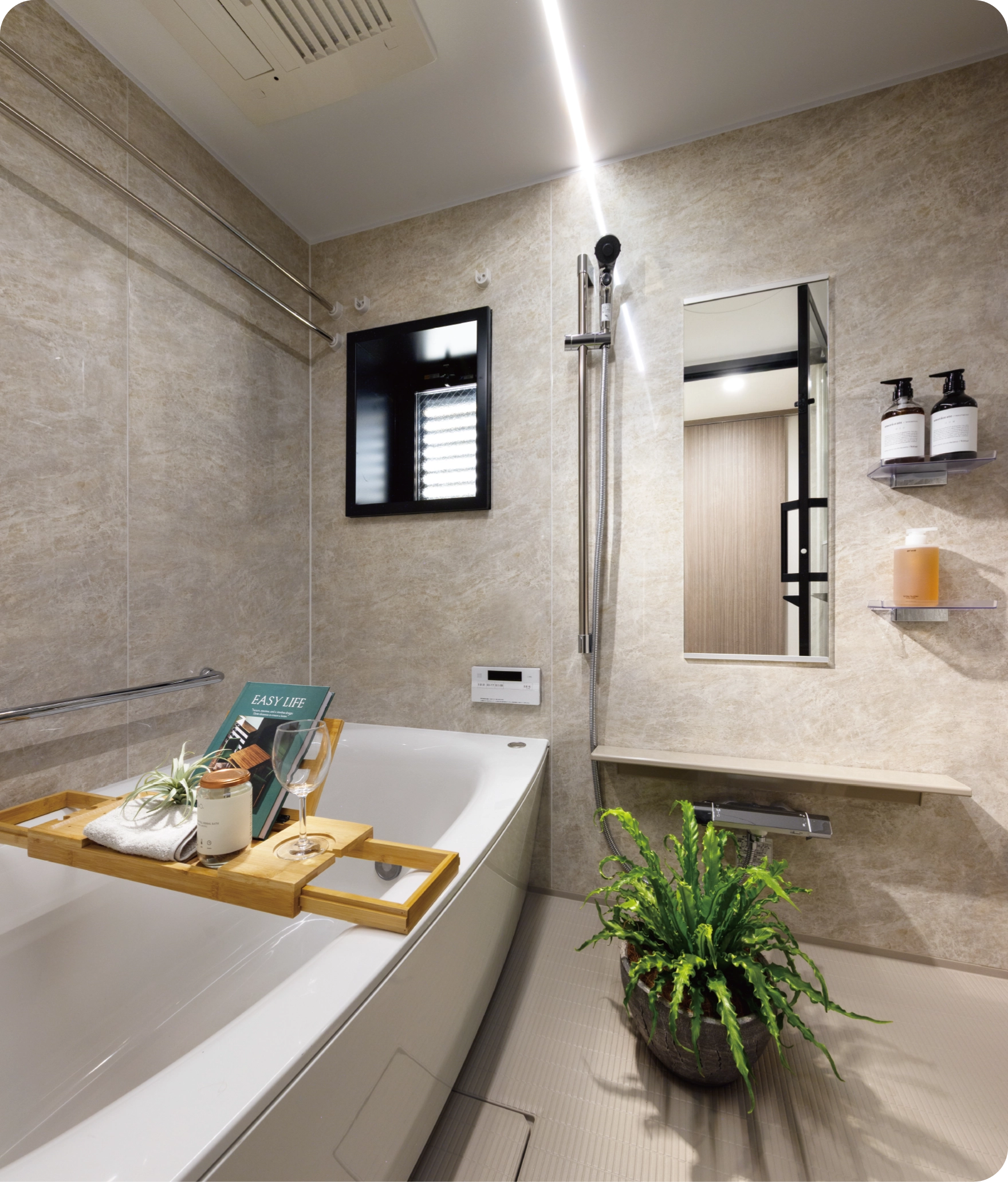 機能性とくつろぎを両立したバスルームです。