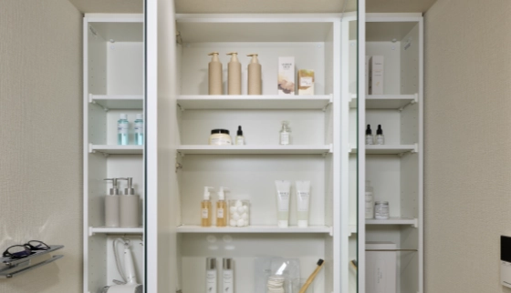 三面鏡裏収納やリネン庫など、