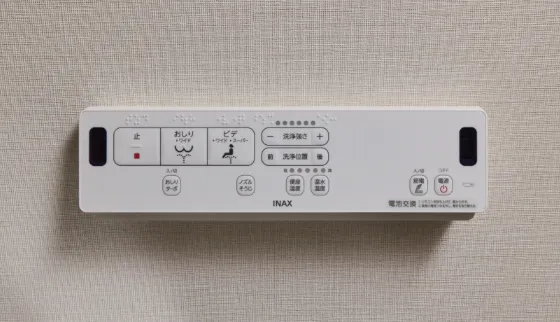 便座には温水洗浄・暖房などの機能を搭載しいつでも快適にご利用いただけます。手の届きやすい位置に快適に操作できる壁付リモコンを設置しています。