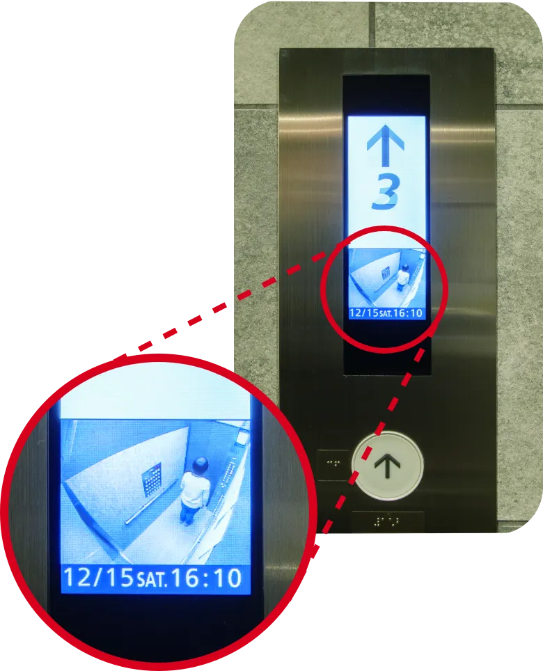 エレベーター内に防犯カメラを設置。エレベーター内部の映像を1階エレベーターホールで確認できます。