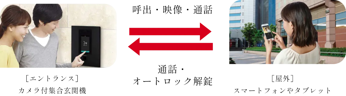 インターホンとスマートフォン・タブレットが連動。