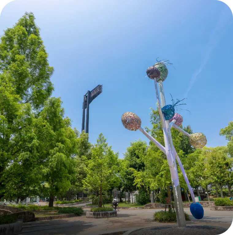 エントランス広場にある「YANMAR MARCHÉ NAGAI」はフードコート型レストラン。 新鮮野菜を添えたローストビーフのライスプレートやサンドイッチをメインに、自家製レモンシロップを使ったレモネードなどメニューも豊富です。 人工芝を使用した全2面のフットサルコートや、大人から子どもまで楽しめる本格アスレチックに加え、長居植物園では、アート集団「チームラボ」の常設展示が開始。大人から子供まで楽しめる大型公園です。