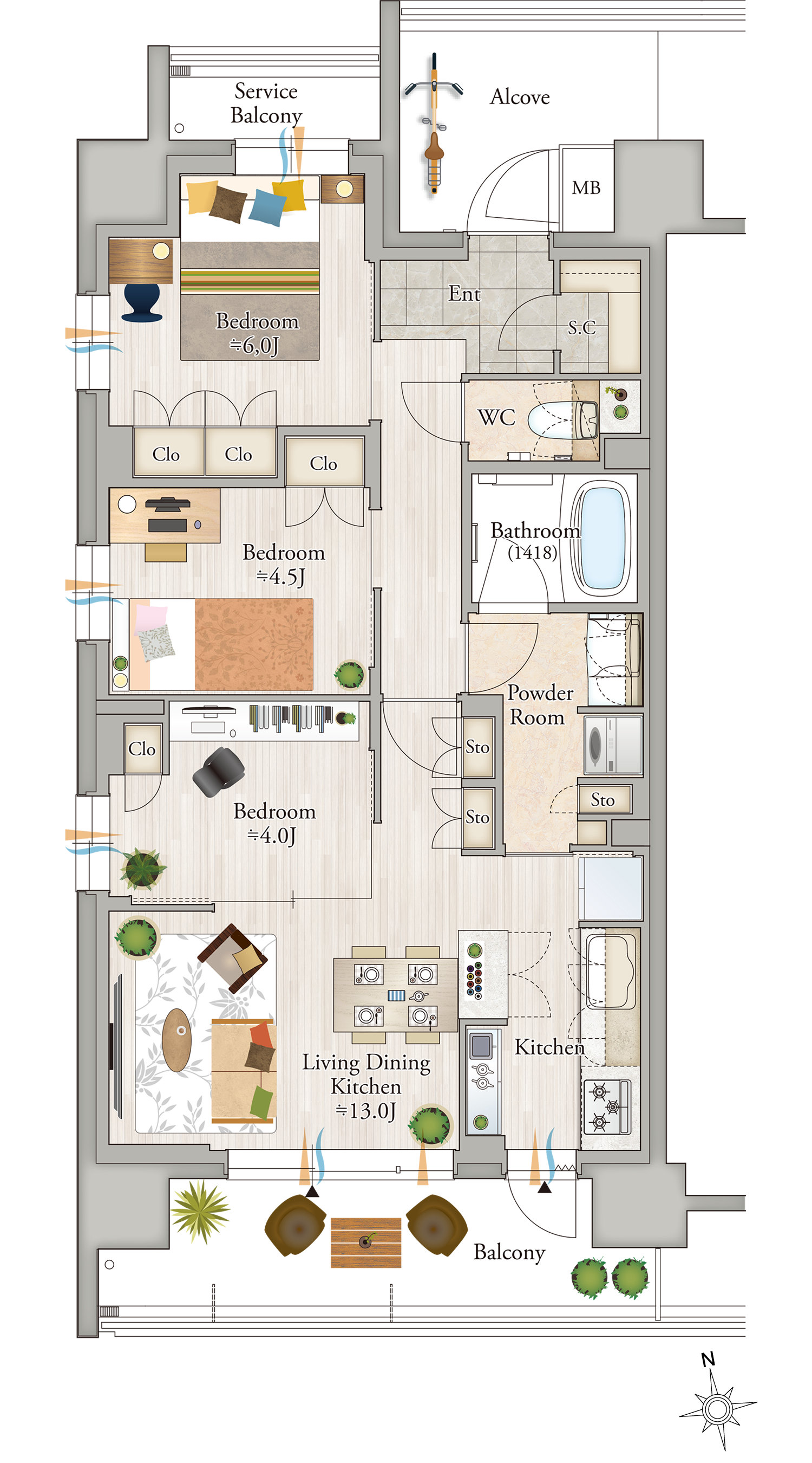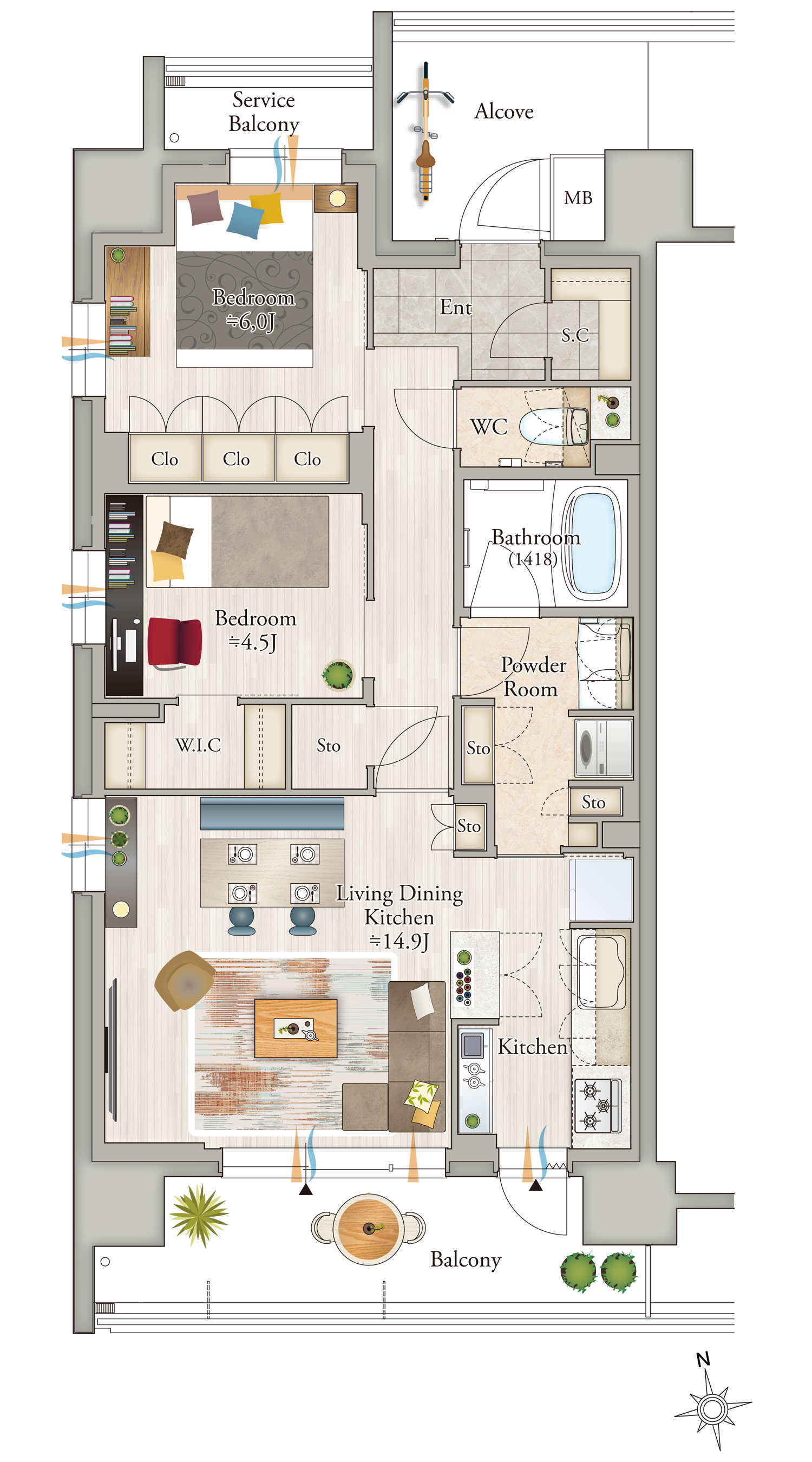 WIC=ウォークインクロゼット、SC=シューズクローク、N=納戸