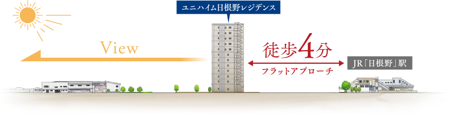 JR「日根野」駅から、フラットな道のりをたどること4分。駅近の便利な立地に、新たな邸宅は誕生します。