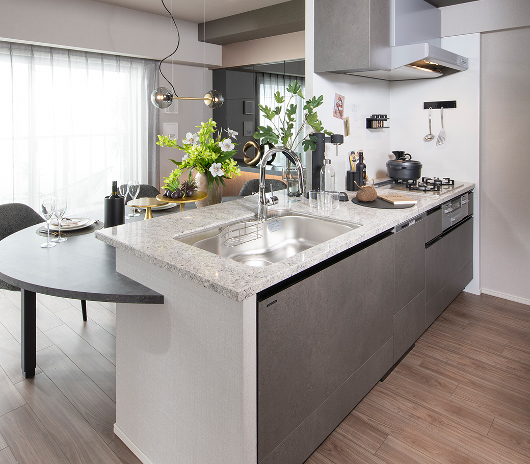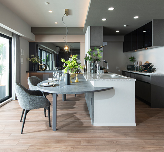 家族の顔が見えるキッチンにも、家事が愉しくなる多彩な設備を