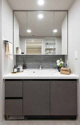 ※掲載の写真は2025年10月にモデルルーム(F’タイプ)を撮影したものに一部CG加工を施しております。家具・小物・植栽・有償オプションは販売価格に含まれておりません。またタイプにより設備・仕様が異なります。詳しくは係員にお尋ねください。