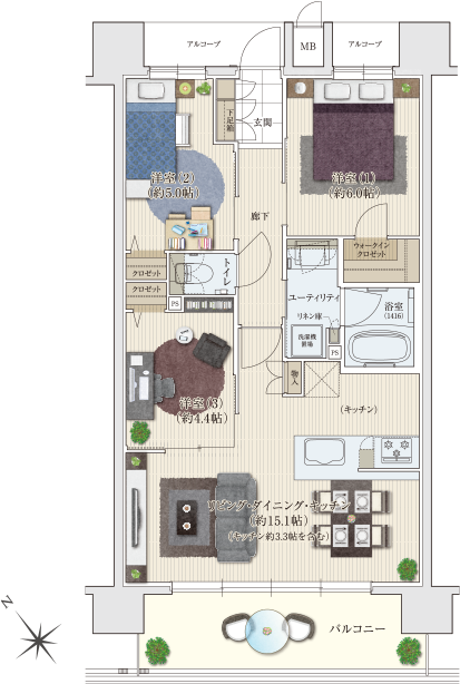 ※間取り内の家具・調度品はイメージです。販売価格には含まれておりません。
