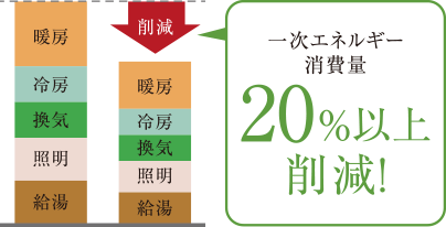 ※2:2016年省エネ基準による「暖房」「冷房」「換気」「照明」「給湯」の基準一次エネルギー消費量との比較。