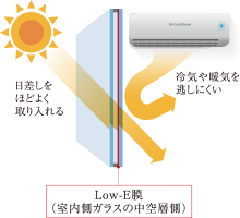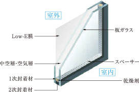2枚のガラス間に空気層を設けた複層ガラスに、