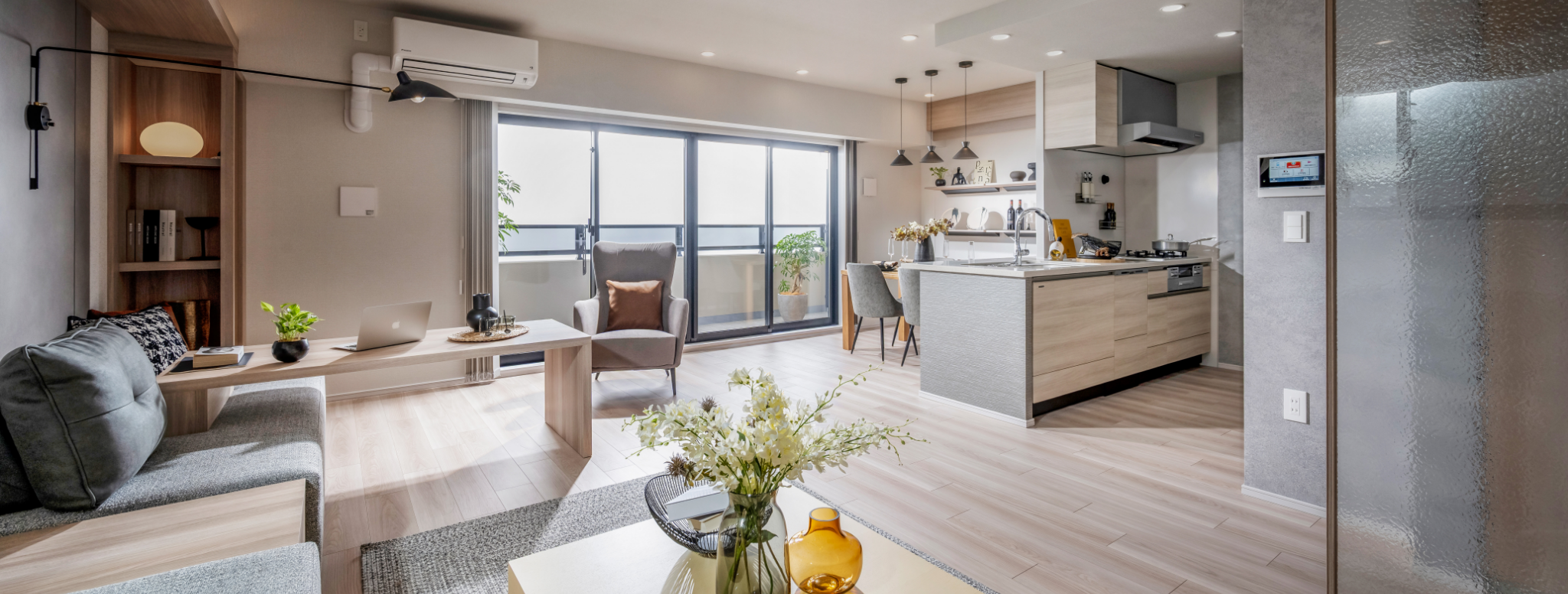 - 例えば… 洋室をなくしてリビングを広げ、2LDKからゆったりとした1LDKにしたプラン