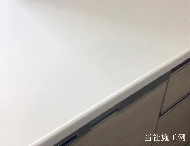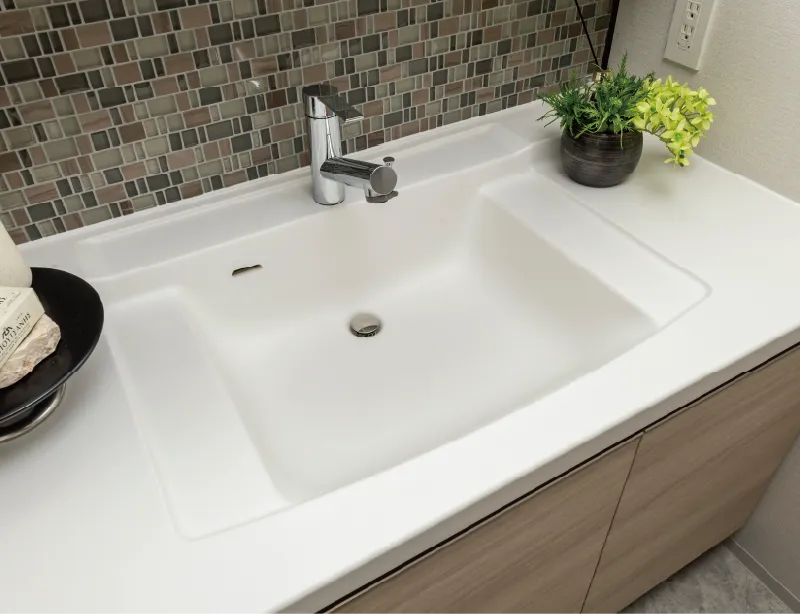 - 継ぎ目のない人造大理石製のデザインカウンター。デザイン性を重視したマットな質感でシンプルながらも高級感を醸し出します。
