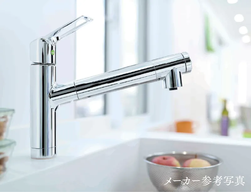 - シンク内のお手入れに便利なハンドシャワータイプ。浄水器を内蔵し、簡単にシャワー・原水・浄水を切り替えることができます。
