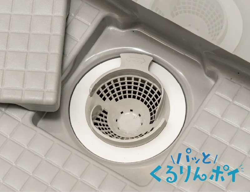- 排水口のお掃除も簡単・ラクラク。渦の力でゴミをまとめ、さっと捨てることができます。