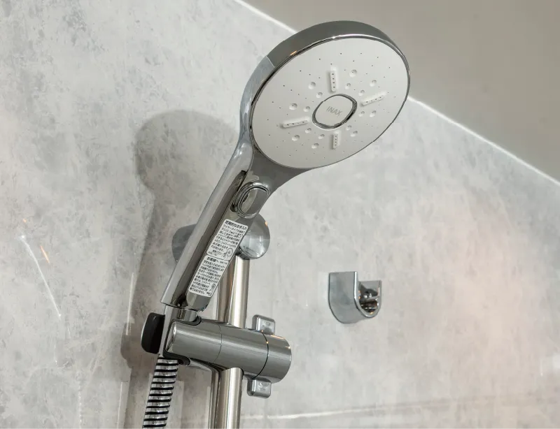 - 水滴にたっぷり空気を含ませることで、ボリュームのある浴び心地と節水の両立を実現しました。