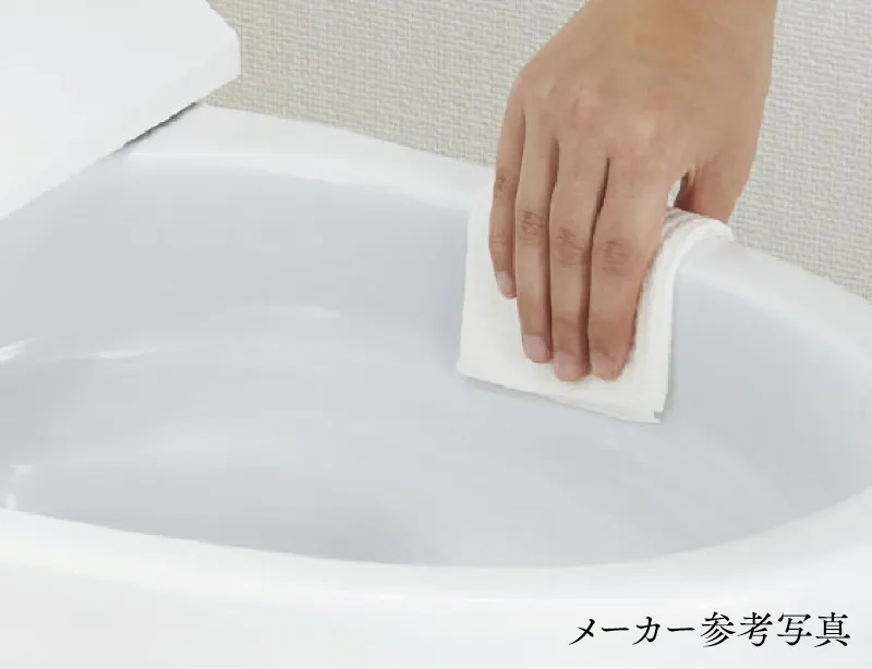 - 便器のフチを丸ごとなくし、サッとひと拭き、お掃除ラクラクです。