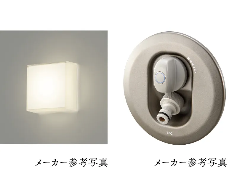 - テラスには、日が暮れてからも安心して快適に過ごせるよう照明を設置。植栽の水やりなどに便利な給水栓も完備しています。