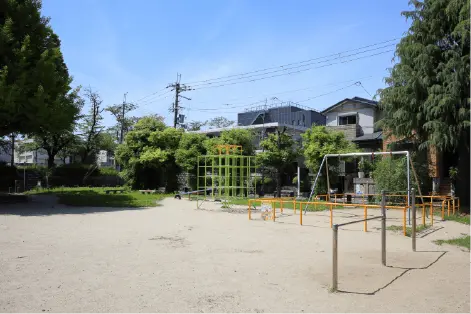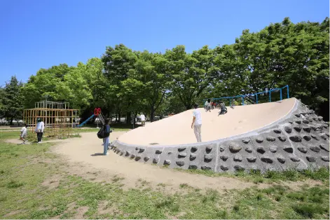 すべり台やブランコなどの遊具も充実しており、自然の潤いを感じながら、家族そろって過ごせる憩いの場です。 -