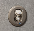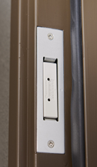 バルコニー、サービスバルコニー、ルーフバルコニーおよびテラスに面する全ての窓(FIX窓を除く)等と全ての住戸の玄関扉にマグネット式の防犯センサーを設置しました。セキュリティを警戒モードにしている時に扉が開けられるとセンサーが反応し、住戸内のインターホン親機と玄関子機が警報を発するとともに、フロントオフィス(管理事務室)と警備会社に自動通報します。※詳細な設置位置は図面集をご確認ください。