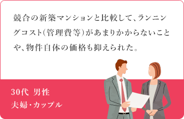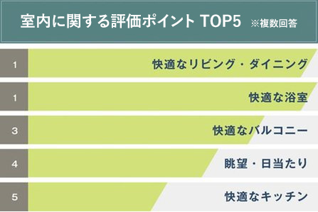 中でも共通しているのが、南東・南西向きという条件を生かした「開放的なリビング・ダイニング」や「バルコニー」「眺望」などに高い評価をいただいています。